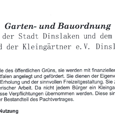 Die Satzung unserers Vereins,und die Bau und Gartenordnungen der Stadt Dinslaken